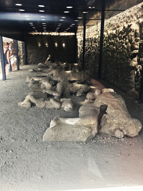 Nakon snažne erupcije otrovni vrući plin se sjeverozapadnim vjertrom širio brzinom munje. Smatra se da su se ljudi ili momentalno ugušili otrovnim plinom, preminuli od udaraca kamenja koje je od siline erupcije padalo na grad ili su izgorili i odmah pougljenili. Vezuv je pak nastavio silovito dva dana izbacivati 1000 Celzijevih stupnjeva vruću lavu, kamenje iz kratera te je izazivao silna podrhtavanja tla koja su u konačnici uzrokovala tsunami. Pompeje je prekrilo 25 slojeva lave i blata, ostavljajući grad učahuren u vremenskoj kapsuli do 1748, kad su započela iskapanja, omogućujući nama da se stoljećima nakon transportiramo na par sati u antičku prošlost.